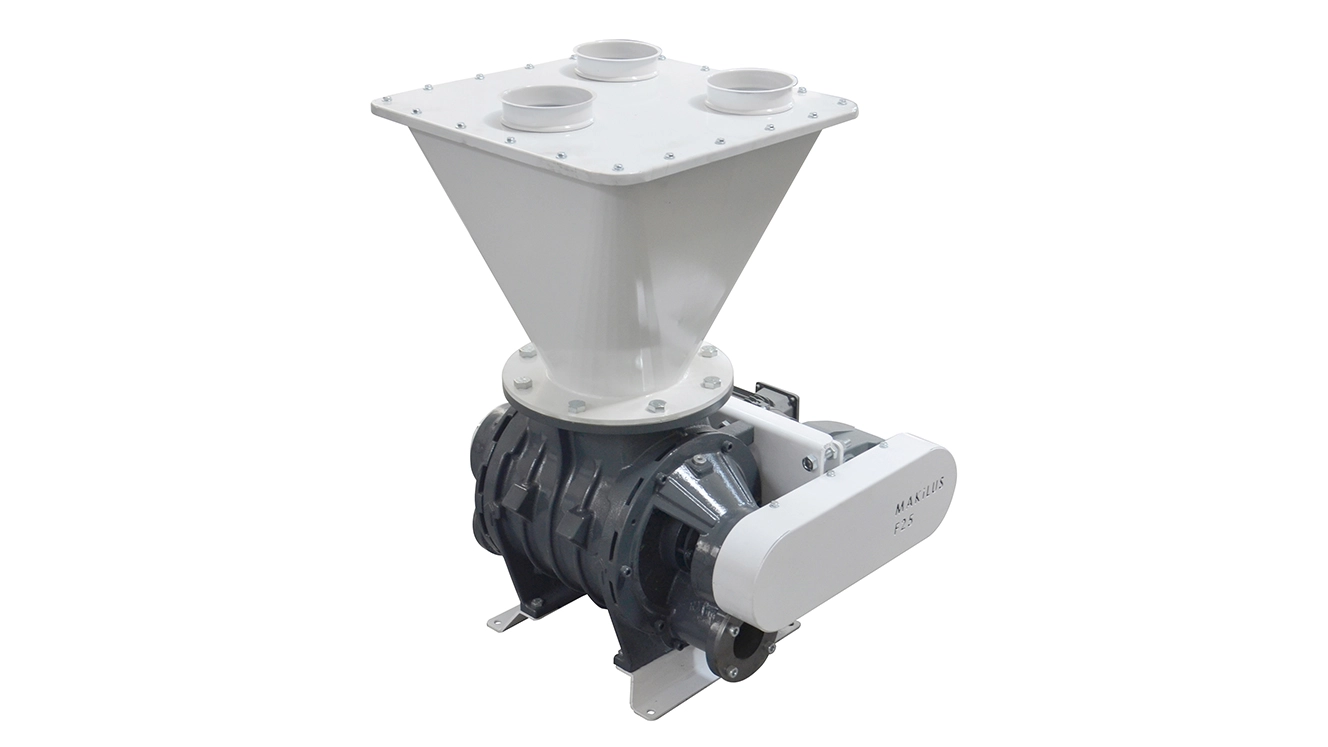Makilus F Series Blower Airlock is a vital component used in pneumatic conveying systems to ensure controlled product transfer. Also known as rotary valve, star feeder, or cell wheel, it works with the blower pump to move the product from the upper inlet into the rotor pockets and then release it into the air channel. The airflow from the blower carries the product into the pneumatic pipeline while preventing backflow and ensuring maximum sealing efficiency.