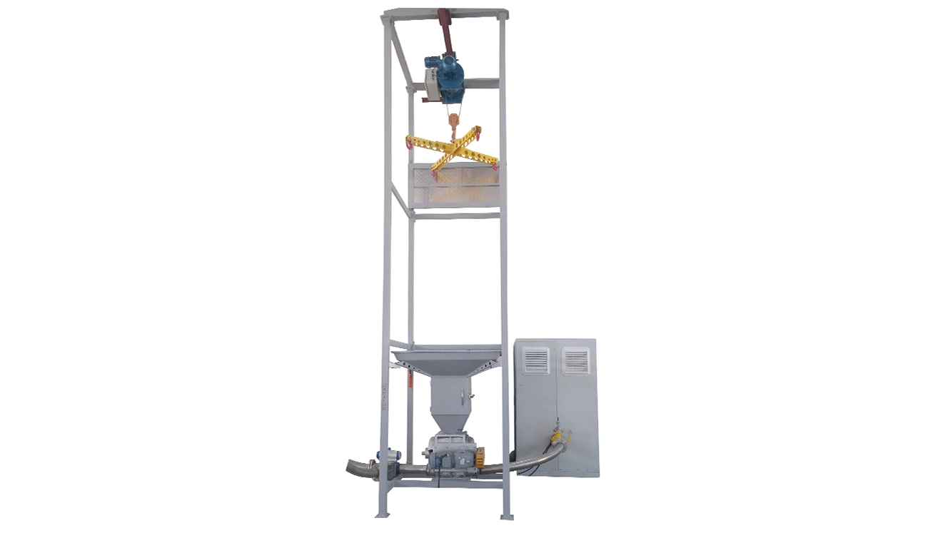 Der Big Bag wird mit einem Monorail-Kran angehoben und auf die Entleerungsplattform gesetzt. Der Sackauslass wird in die Verriegelungsvorrichtung eingespannt und geöffnet. Anschließend wird das Produkt über eine Schneckenförderung oder ein pneumatisches Fördersystem zum gewünschten Ziel transportiert. Während des Prozesses können Vibrations- und Dosiersysteme aktiviert werden, um einen kontinuierlichen und effizienten Betrieb zu gewährleisten. Bei staubigen Materialien werden Filtersysteme integriert, während Load-Cell- und Bedienpanele eine Echtzeit-Überwachung ermöglichen. So können Produkte problemlos zu mehreren Punkten, zwischen Etagen oder über große Distanzen gefördert werden.