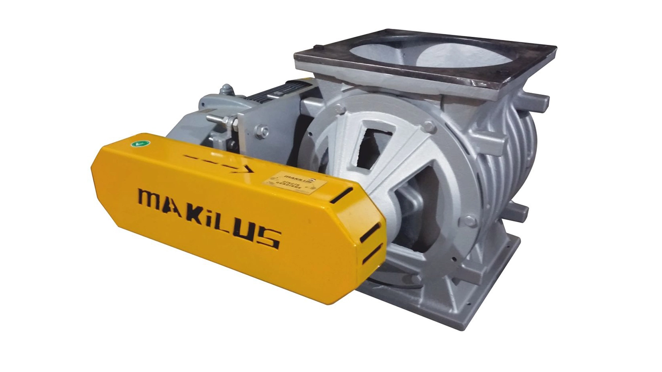 Hava kilidi (Rotary Valf, Yıldız Besleyici, Hücre Teker, Airlock, Eklüs) pnömatik taşıma ve filtre sistemlerinde kullanılan, ürün akışını kontrol eden kritik bir ekipmandır. Silindirik gövde içerisine yerleştirilen paletli rotor, rulmanlı yataklar üzerinde döner ve üst girişten gelen malzeme kanat aralarına dolar. Rotorun dönüşüyle birlikte ürün alt çıkıştan düzenli olarak boşaltılır. Bu yapı sayesinde ürün kaybı olmadan, hava sızdırmazlığı korunarak güvenilir taşıma sağlanır.
